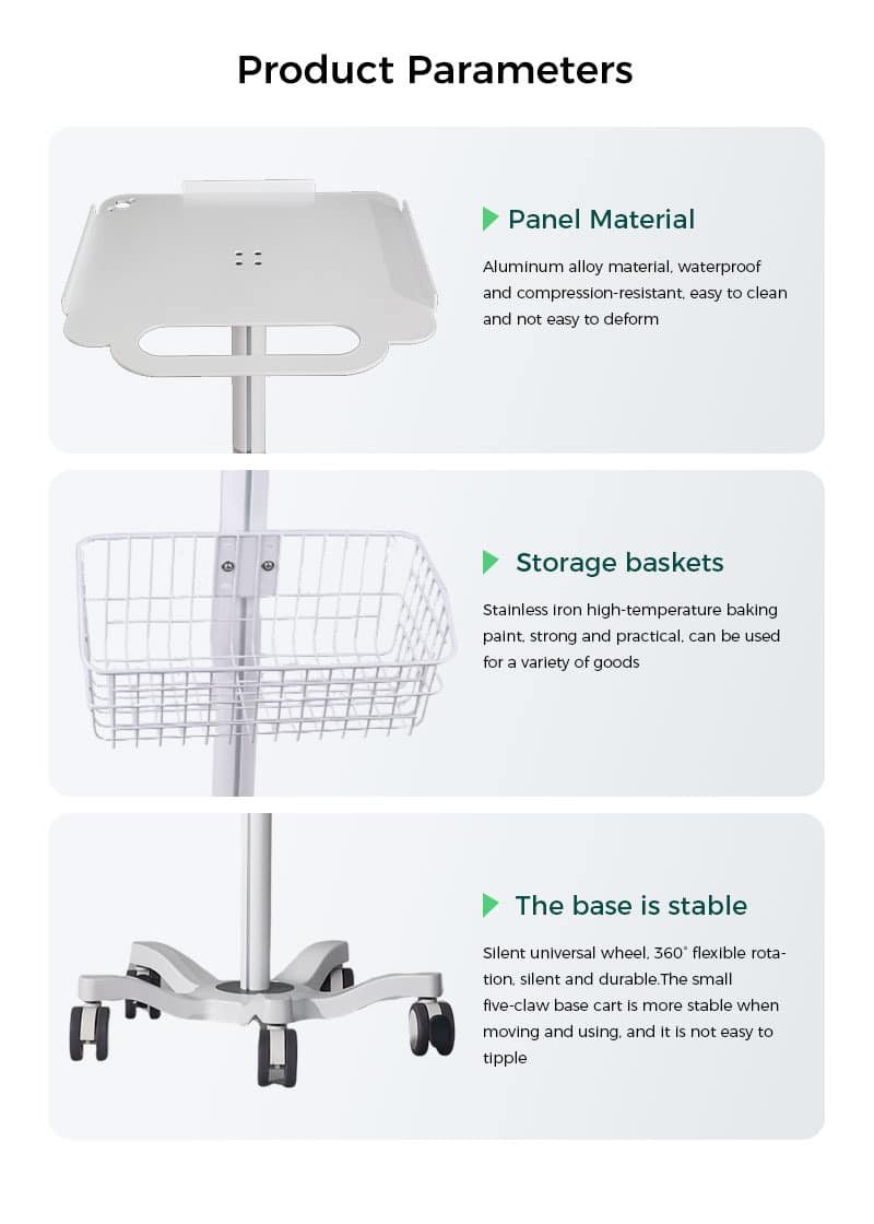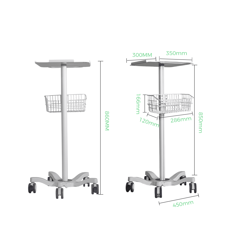 Model: XT1 Net Weight: 7.15kg Base Material: ABS Castor: 3-inch silent caster Shelf Material: Aluminum Storage Basket Size: 286*120*166mm Overall Height: 860mm
